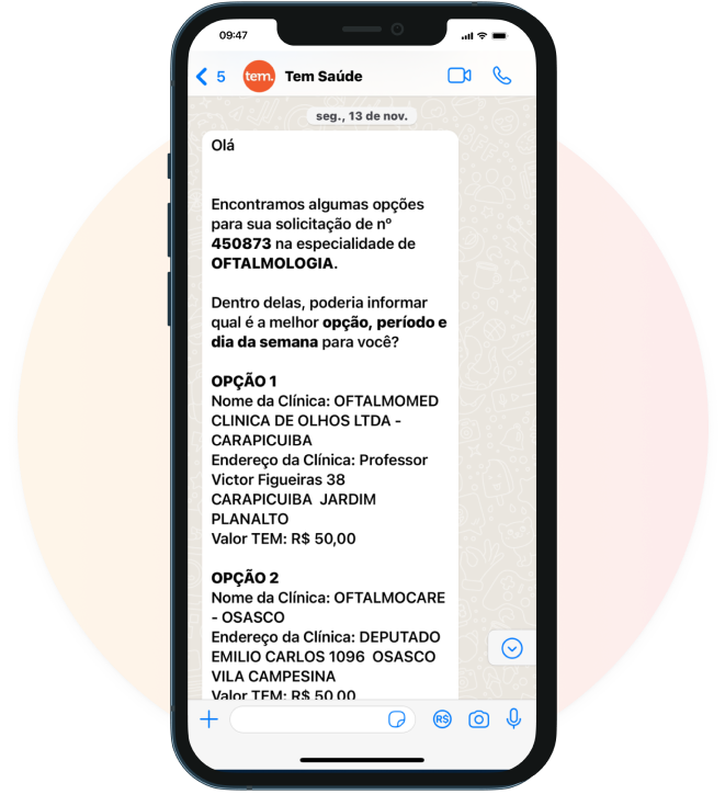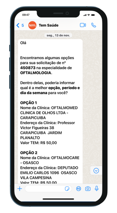 Disponível para agendamento quando precisar de cardiologia, psicologia, nutrição e muito mais.