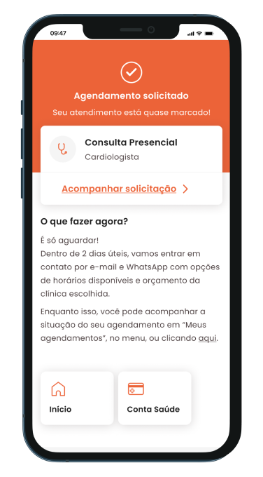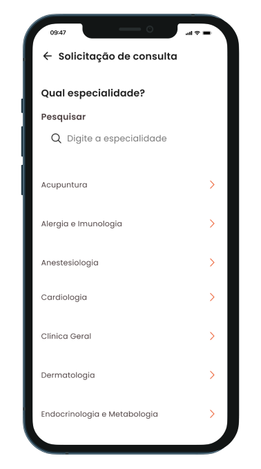 Disponível para agendamento quando precisar de cardiologia, psicologia, nutrição e muito mais.